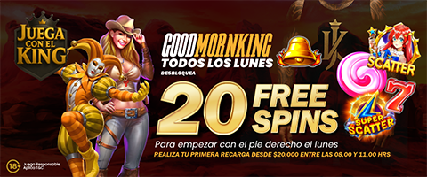 Activa GOOD MorKING este lunes: recarga desde $20.000 entre 08:00 y 11:00 y recibe 20 Free Spins para iniciar la semana ganando.